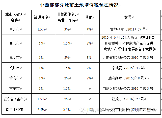 (五)调整乌鲁木齐市土地增值税预征标准